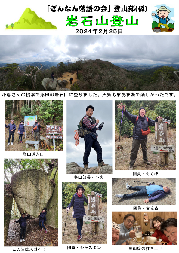 - 2024.03.01 「ぎんなん落語の会」登山部 岩石山登山